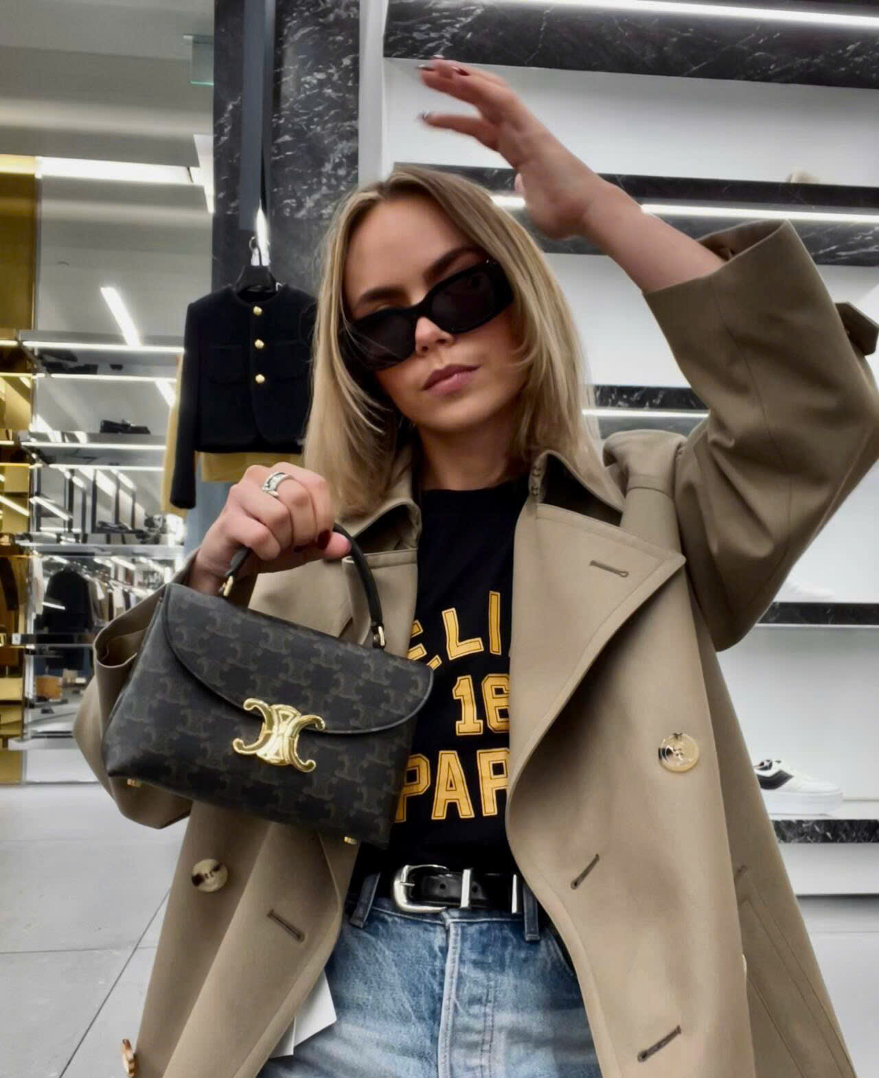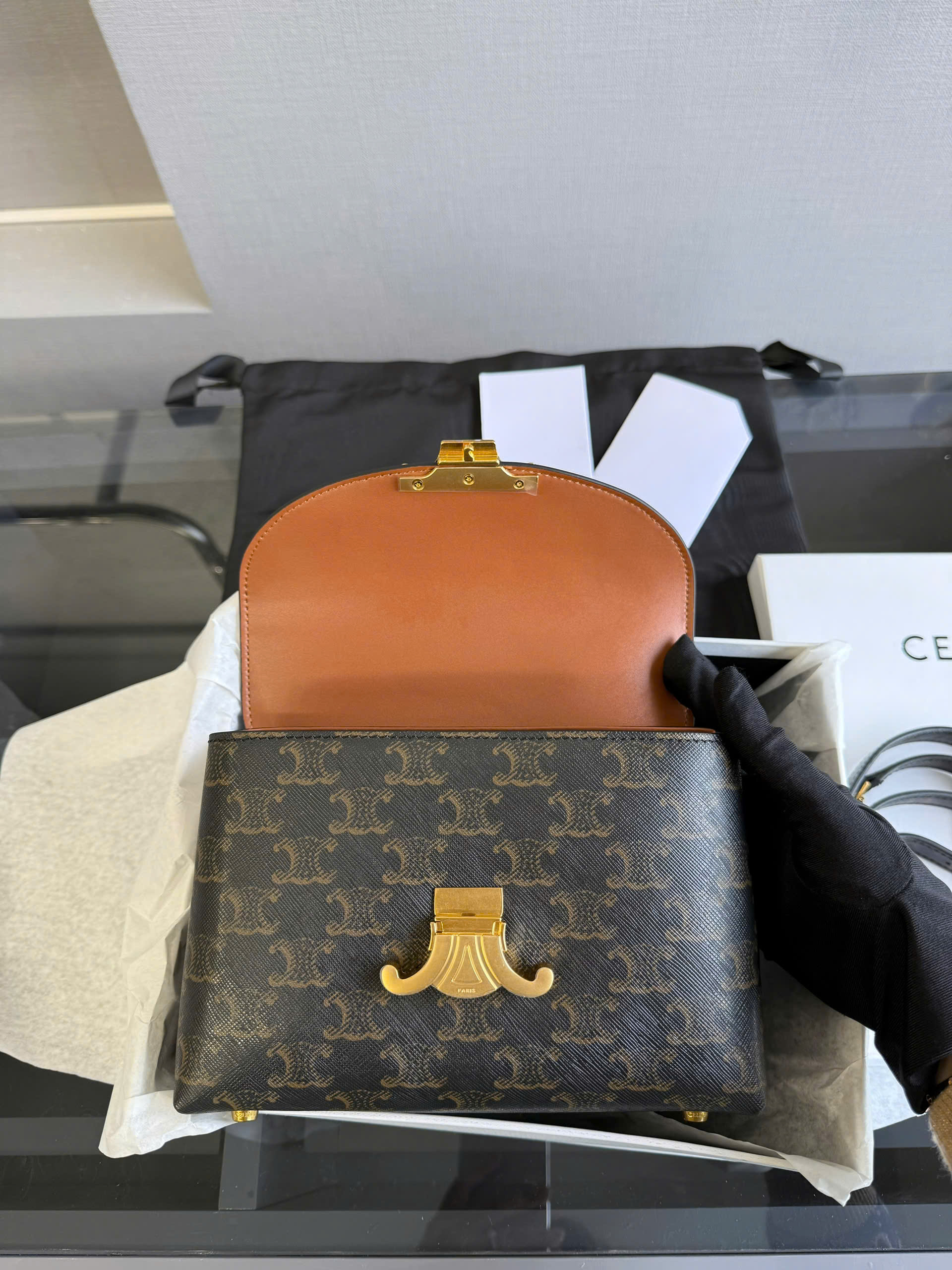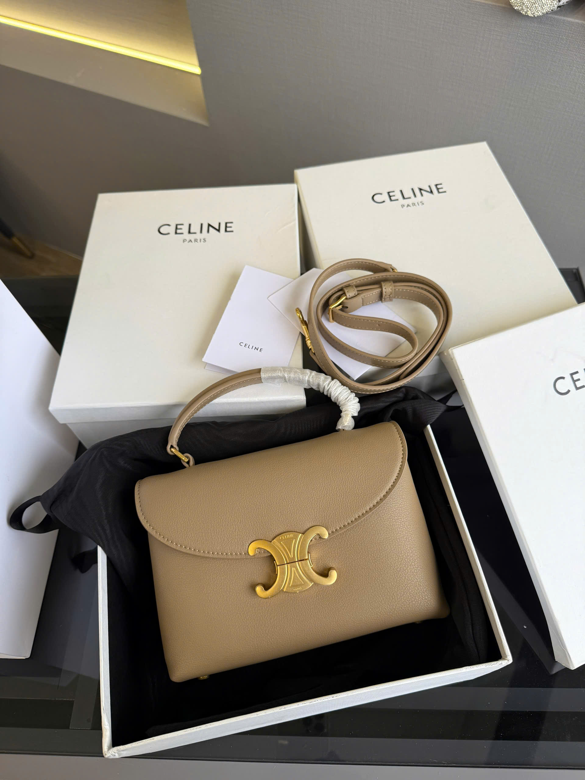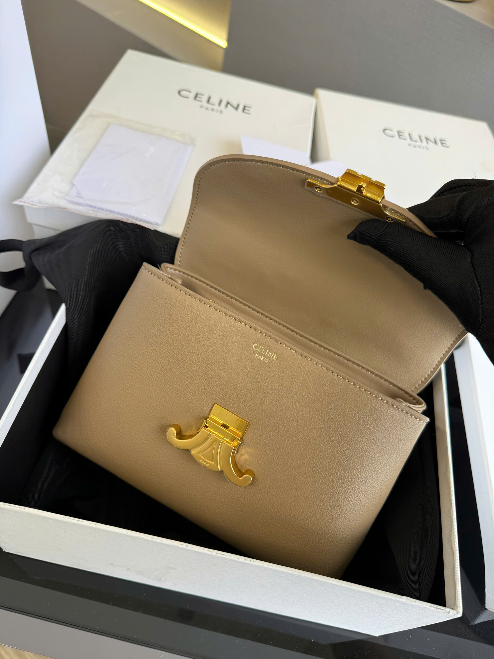 ➖ Logo Triomphe rõ nét, form đứng chuẩn từng góc cạnh